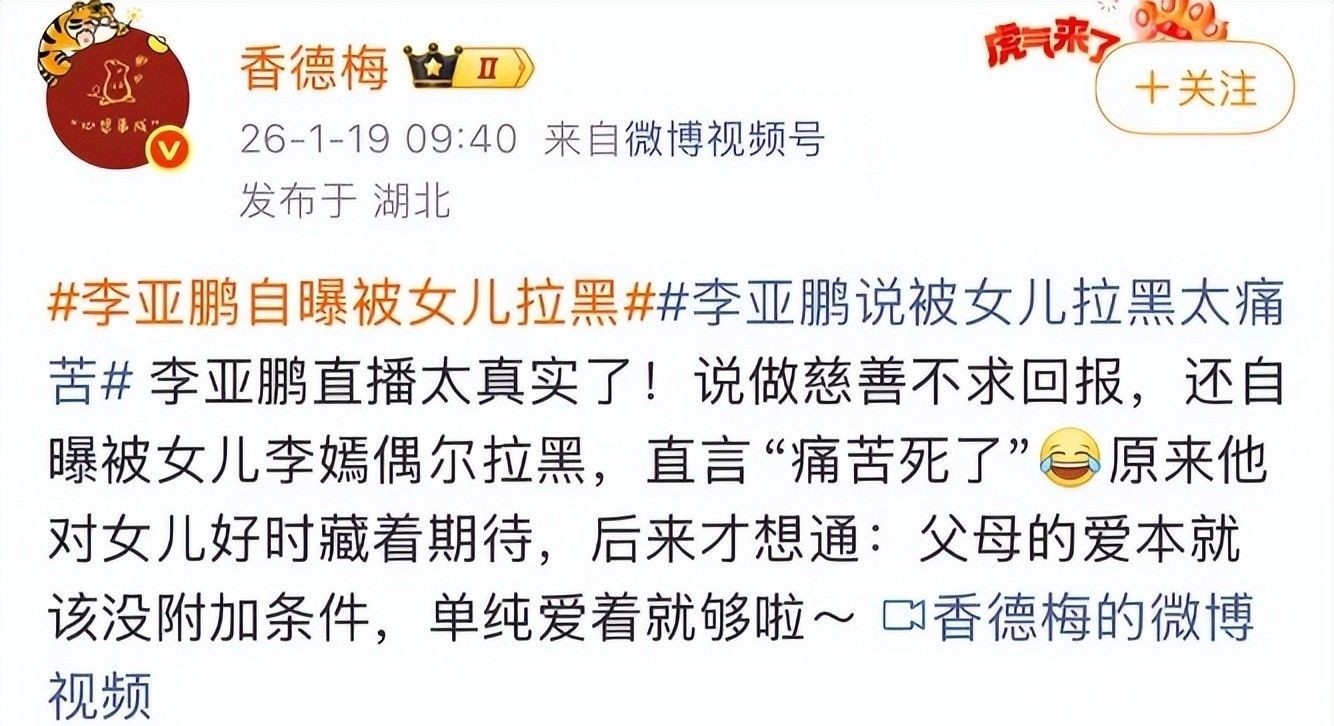李亚鹏直播吐槽被女儿李嫣拉黑!卑微老父亲顿悟:爱该无条件输出